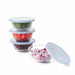 - Fitted lids lock in freshness and allow compact storage