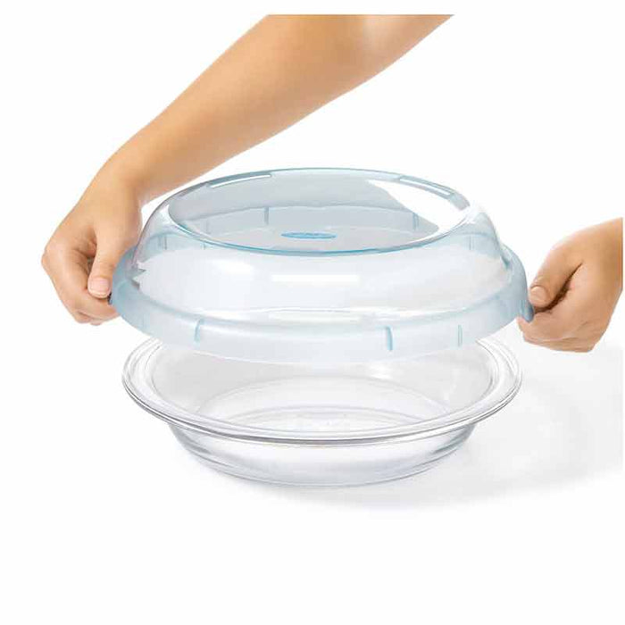Features of the OXO 9" Glass Pie Plate with Lid include: