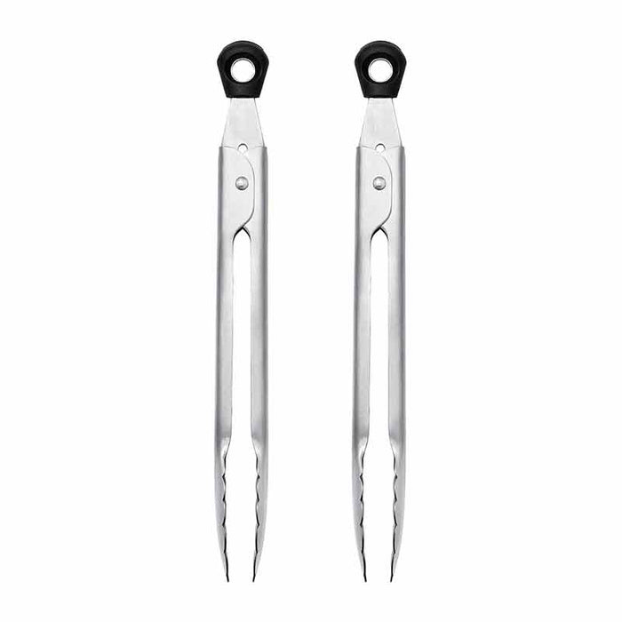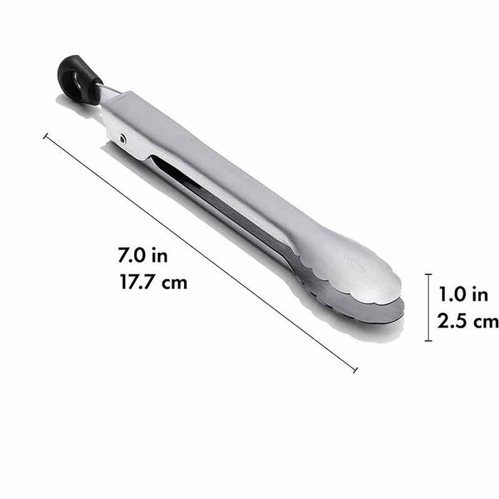 The OXO Good Grips 2-Piece Mini Tongs Set is the perfect blend of form and function: They look great paired with your charcuterie board, and at 7" long, they’re just the right size to nab the last few pickles, olives, and artichoke hearts from jars. Scalloped edges hold food securely so you can feel confident cooking with them, too. Use them to turn bacon, toss a small serving of pasta, or remove food from the toaster oven. Tongs lock closed for easy storage. The OXO Set of 2 Mini Tongs is durably made from stainless steel and is dishwasher safe.