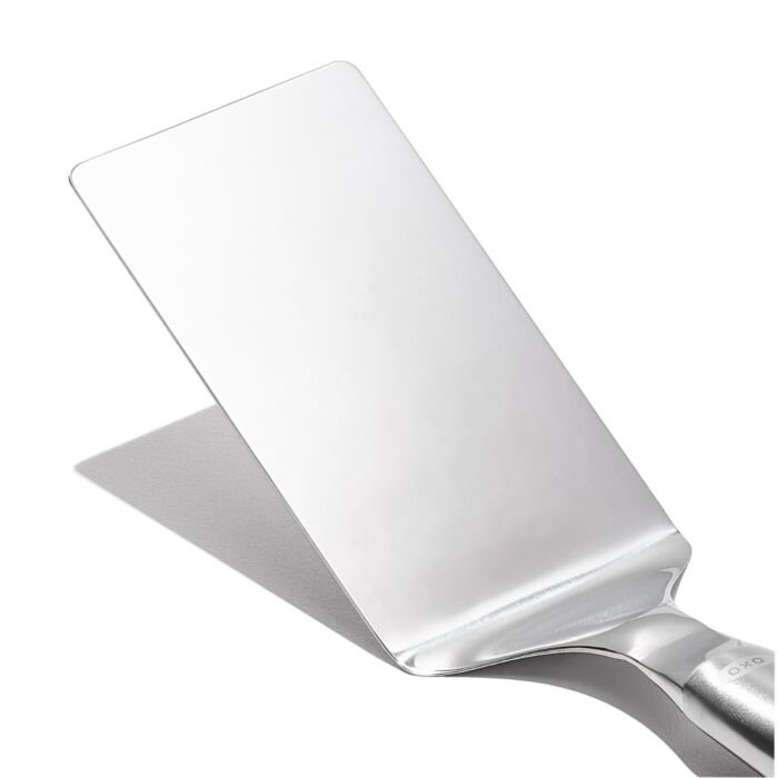 The OXO Steel Lasagna Turner is good for more than just slicing and serving everyone's favorite baked pasta! It can dish out quiche and brownies, flip burgers and veggies, and much more. The angled, stainless steel head is flexible enough to slide under fragile noodles yet sturdy enough to hold up to a heaping serving. The tapered design adds more stability so that everything can safely make its way from dish to plate. And the handle was shaped with comfort in mind. Dishwasher safe.