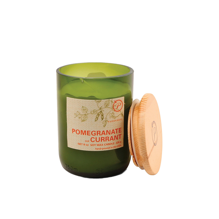 Sometimes, it is easy being green. The Paddywax Eco Candle starts with an upcycled glass vessel, and hand pours 8 oz of premium soy-wax blend to create a designer quality candle you can feel good about. Subtle atmospheric scents, cotton wick, and a branded wooden lid complete the package. The Paddywax Eco Candle is made with quality materials, inspiring color palettes, and intriguing fragrances to set the tone in your home. Great for gift giving. This 8 oz poured candle measures 3" l x 3" w x 4.5" h.