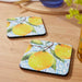 Transport yourself to sunnier climes with this vibrant set of six Amalfi Lemons coasters. Bright yellow lemons pop against a classic Mediterranean tile pattern to create an eye-catching design, which will light up any room. Made from the finest quality, 5mm thick board with a durable cork back and expertly sealed to ensure heat and stain resistance, caring for your coasters couldn’t be easier - simply wipe clean with a damp cloth after each use. Pair with a matching set of Amalfi Lemons placemats and complete the Italian look by adding a glass of Aperol Spritz!