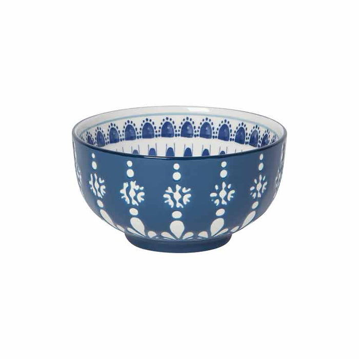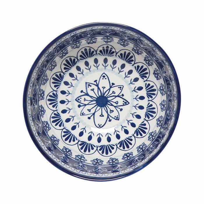 The Danica Heirloom Porto Stamped Bowl is a glazed porcelaine piece, available in 3 sizes, with a global-inspired stamped design. The Porto bowl has deep dimensions in all sizes and a Mediterranean tile-inspired design in deep marine blue and white. All sizes bring gorgeous style and color to you table, and are suitable for a wide variety of foods. The Porto Stamped Bowl is dishwasher and microwave safe, for everyday use.