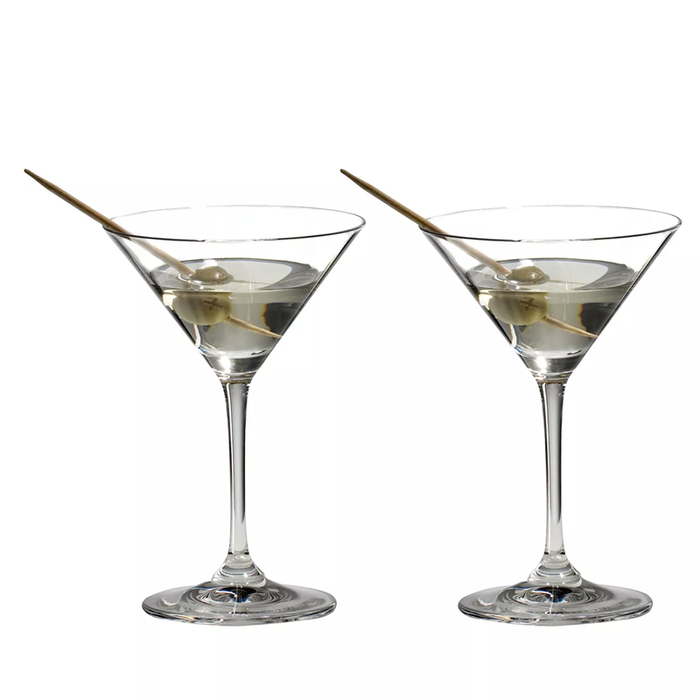 Riedel's Set of 2 Vinum Martini Glasses set the standard for this iconic profile from the Vinum cocktail-specific series. Simply stated, the Martini glass is an essential piece for every home bar. The steeply rising sides of this glass provide an elegant piece for your favorite dry or dirty Martini. The glasses are also traditionally scaled, with a 5.4 oz capacity. The Riedel Set of 2 Vinum Martini Glasses is dishwasher safe. Measures 3" w x 8.9" h.