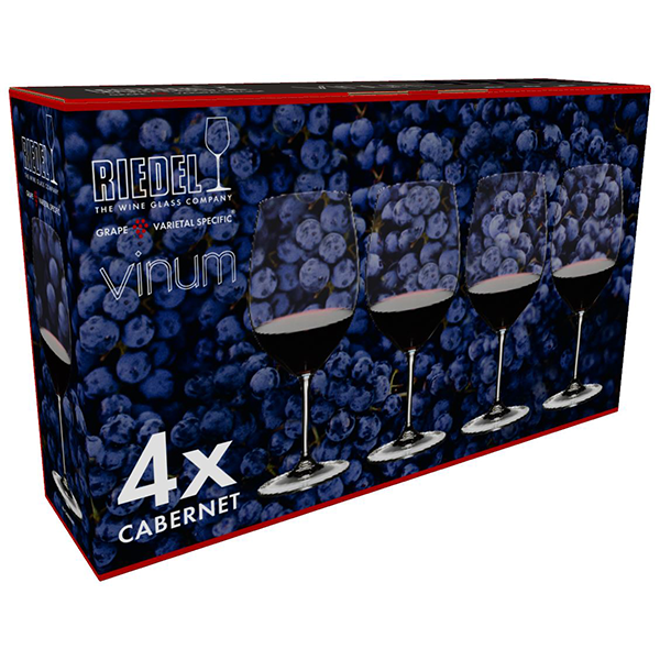 Features of the Riedel 4X Vinum Cabernet/Merlot Glass Set include: