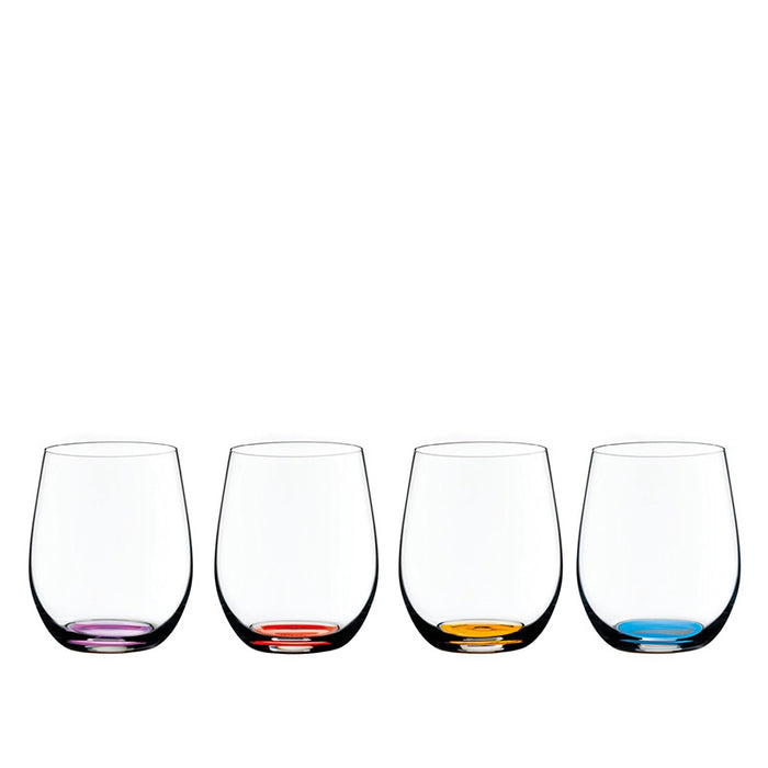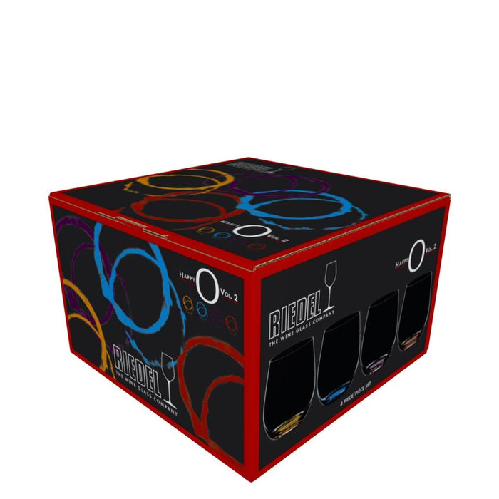 The Riedel Happy O Wine Tumbler Vol. 2 is a colorful and modern riff on the stylish and practical O Series of quality crystal wine glasses. This set of 4 machine blown glasses feature a subtle tint of vibrant color near the base, each glass with its own hue of turquoise, purple, red and orange. The wine glasses are an excellent all-purpose shape for any varietal or blend. Riedel Happy O Wine Tumblers are made in Germany and dishwasher safe for easy, everyday use.
