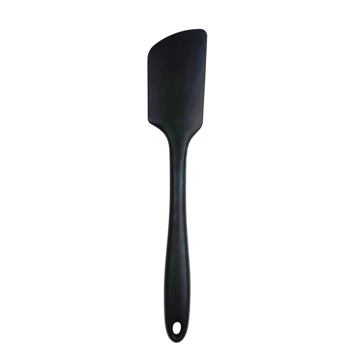 The RSVP Silicone Spatula is a solid entry in our favorite spatula design, featuring a sturdy metal core surrounded by a durable high-heat resistant silicone coating. This 11" essential offers the structure to mix and hold heavy batters, as well as the form-fitting flexibility to scrape bowls clean or spread smoothly. A comfy contoured handle with a hanging loop completes the package. Dishwasher safe.
