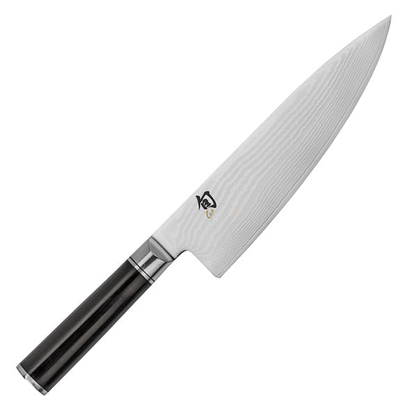 The Shun Classic 8" Western Chef's Knife upgrades the traditional European design to give you a true edge on the line, while still capable of the heavier demands of professional kitchens. Crafted for precision, speed and comfort, Shun Classic knives have revolutionized the cooking experience for home cooks and professional chefs alike. The Damascus-type blade is beautiful and adds stainless properties, while the very hard VG-10 "super steel" cutting core holds an extremely sharp, professional edge. Ebony-colored PakkaWood handles are shaped in the traditional Japanese "D-shape" for all-day comfort. Hand washing is recommended to preserve the fine edge and long-term preservation of the handle. And like all Shun Classic blades, it includes free lifetime sharpening and is backed by a limited lifetime warranty.