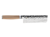 - Hand-hammered Tsuchime detailing on blade helps food release