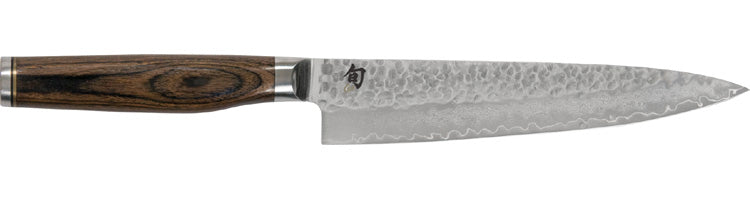 The Shun Premier 6.5" Utility Knife is a nimble, do-anything profile that cooks love to have on hand for little side-jobs that pop up during prep. And this 6.5" Utility is very much up to anything, with clean cutting performance that is truly a joy to use.