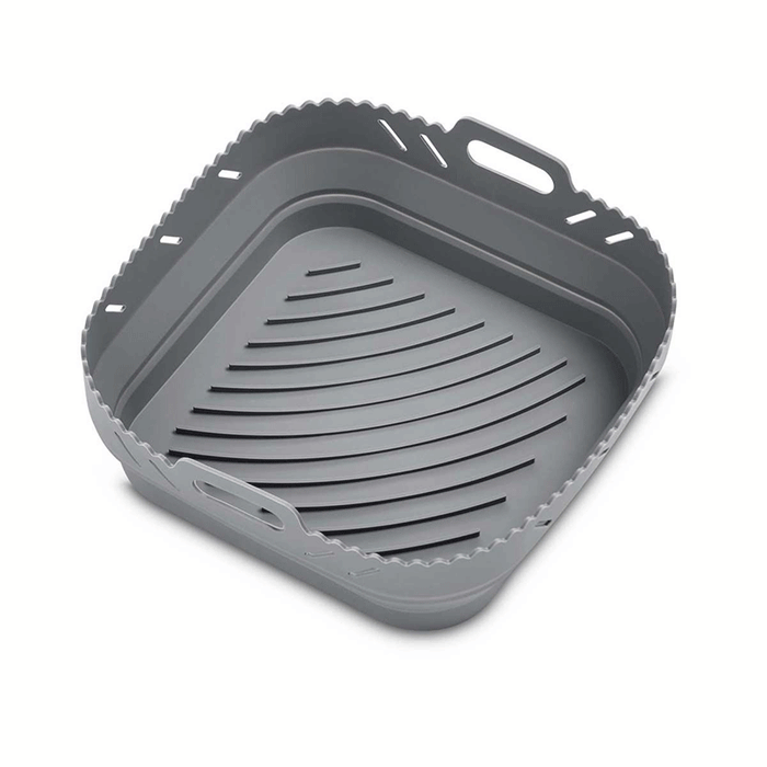 HIC Kitchen's Collapsible Silicone Air Fryer Basket Liner is a game-changer for those who love their air-fried favorites but can do without all the difficult clean-up! This silicone Air Fryer Basket Liner keeps food, oil, glazes, and sauces from sticking to air fryer cooking baskets, which are much harder to clean. Instead, this reusable silicone liner basket has a non-stick surface that releases cooked foods quickly and easily. Often, you can just rinse it off. or throw it in the dishwasher for a total clean! Both square and round designs are soft, flexible, and sized to fit 5-7 quart air fryers, with ventilation all around to accommodate air circulation. The deep ridges hold food above oils and fats and distribute heat evenly for uniform cooking. It's ideal for use in the air fryer, oven, multi cooker, and microwave, and it collapses for space-saving storage.