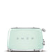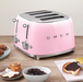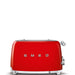 The Smeg 4 Slot Toaster offers twice the functionality and double the style! Smeg toasters nail the mid-century design aesthetic, and they are quality-constructed with steel housing and powder-coated finishes in authentic vintage colors. Only the simple, clean, back-lit rotary dial control hints at the technology inside. The 4 Slot Toaster is a side-by-side design with 2 independent sets of controls, so the left side slots and right side slots can be used separately. Each slot is an extra-wide 1.4", and has self-centering interior guides for even toasting on both sides. The 6-setting controls are simple to use and each side also features reheat, defrost, and bagel functions. 2 vintage stainless steel ball knob levers are centered on each side, slices pop-up automatically. Backed by a Manufacturer's 1-year Hassle-Free Repair or Replace Warranty. Measures 13" l x 12" w x 8" h.
