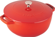 The Staub 3.75 Quart French Oven is specifically designed to provide maximum moisture recirculation for long-cooking soups, stews and braised meats. The updated Chistera drop-structure lid causes moisture to cascade from bowed top, to brim to base, while its cast iron construction ensures the even distribution and retention of heat. The interior is coated with matte black enamel that will not react with foods and cleans easily. This exquisite French pot can go from oven to table without complaint. The Staub 3.75 Quart French Oven doesn't require seasoning, and will perform with good nonstick properties, straight from the box. Available in Cherry and Dark Blue.