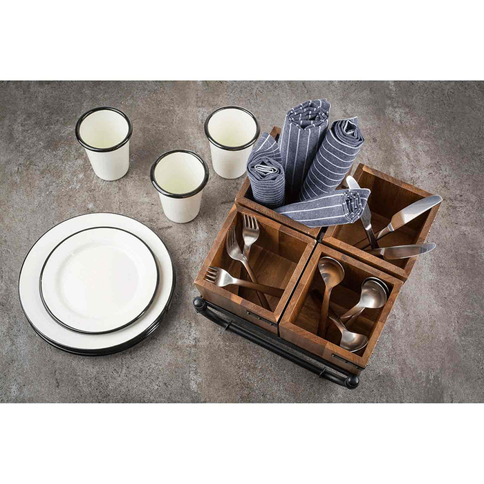 Features of the Tablecraft Industrial Collection Acacia Cutlery Holder include: