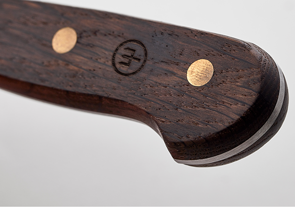 The Wusthof Crafter 6" Cook's Knife celebrates the spirit of old-world craftsmanship while exhibiting the flawless performance and practicality of Wusthof's advanced forged blades. The Crafter Line features beautiful oak hardwood handles fastened by bright brass rivets. The oak is treated to a gorgeous "smoked" stain and finishes that shows off the wood's natural grain; the resulting style is warm, precise, and timeless. Otherwise, the seamless tip-to-butt forged 6" Chef's Knife enjoys the same exceptional quality and professional performance as the Wusthof Classic Line. The pieces are forged from Wusthof's premium, no-stain high-carbon steel and are precisely sharpened by laser-guided PEtec technology. Includes the manufacturer's limited lifetime warranty.